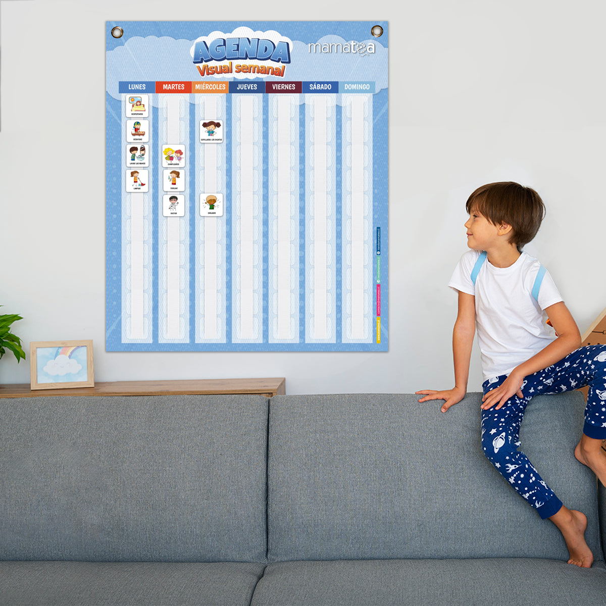 Esta agenda Visual semanal, es la explicación cronológica de las actividades o sucesos importantes del día. Utilizando pictogramas. Este tipo de agendas visuales facilitan la comprensión y la anticipación de: