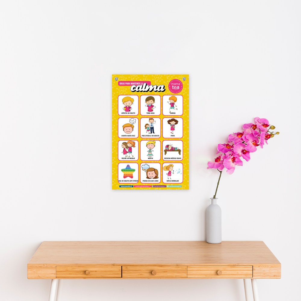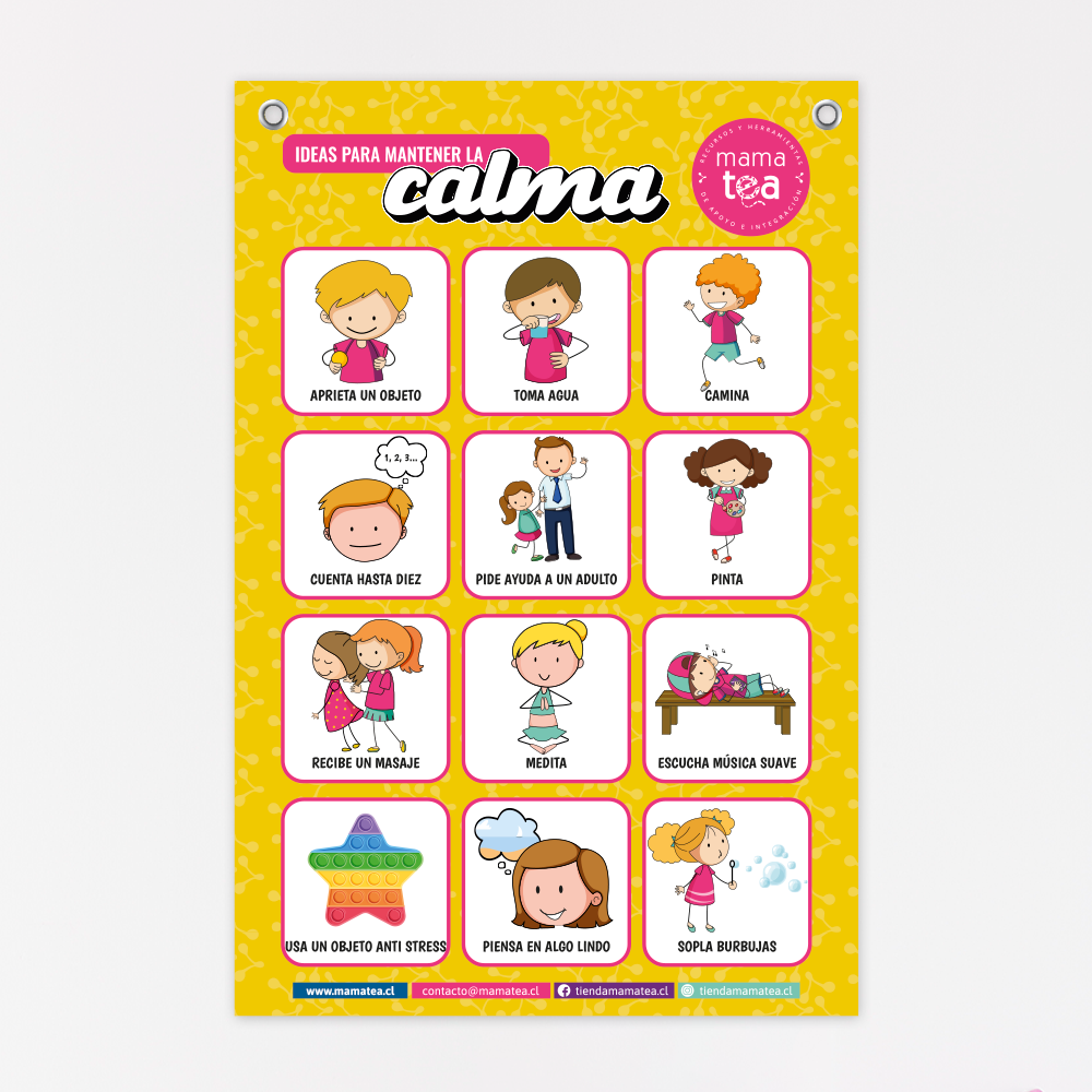 Apoyo visual con técnicas de relajación para ayudar a los niños a volver a la calma después de un enfado, frustración o situación estresante.